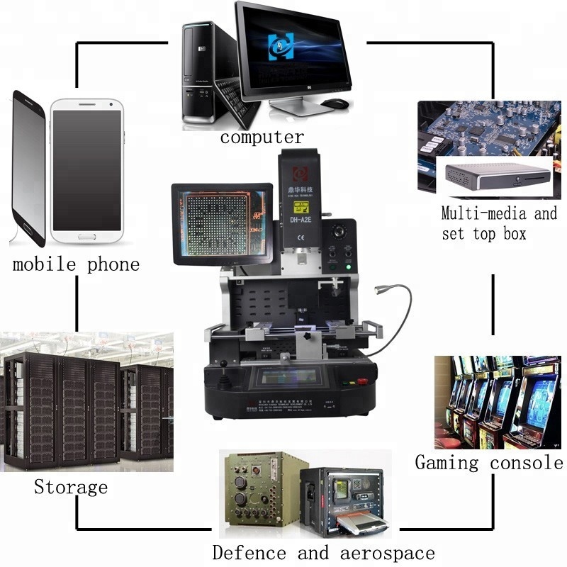 DH-A2E ir unikāla stila BGA pārveidošanas stacija, augstas izšķirtspējas CCD kamera ar automātisku barošanas un iztukšošanas sistēmu, kas ir daudz ērtāk izmantojama. augstu pārdošanas veiksmes rādītājs ir ļoti slavēts starp klientiem.